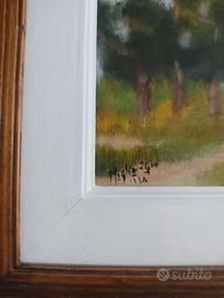 Pittura a olio rappresentante paesaggio maremma dimensioni cornice 48x38 dimensioni quadro 16x26.