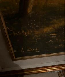 L’opera è firmata “L. Zanelli” in basso a sinistra ed è completa di importante cornice dorata, che la rende ideale come elemento d’arredo classico o tradizionale.
