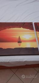 Quadro con stampa paesaggio mare e tramonto.