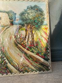 Quandro paesaggio salentino Acrilico su legno Misura 44x39 cm