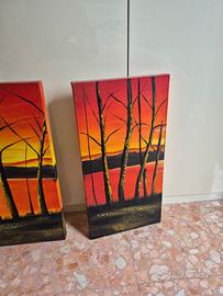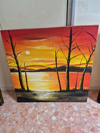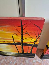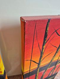 Vendo panorama di tramonto, dipinto a mano. 3 pezzi 2 (30x60x4) 1 (60x60x4). Presenta piccoli segni dovuti al tempo, come da foto. Su firenze e zone limitrofe si fa anche consegna a mano.