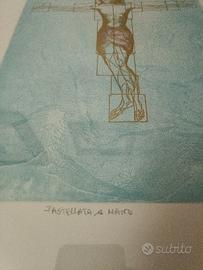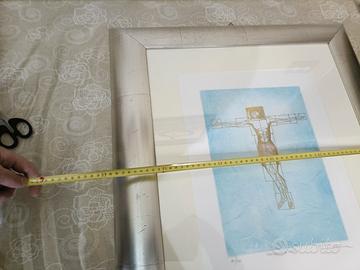 Quadro del crocifisso pastellato a mano in oro zecchino dell'artista Antonio Nocera,misure 70x60.