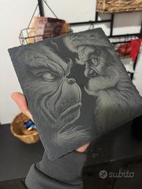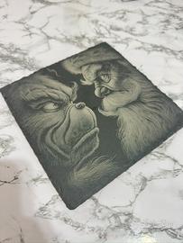 Piatto in ardeisa con inciso a laser grinch vs babbo natale,misure 20x20