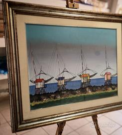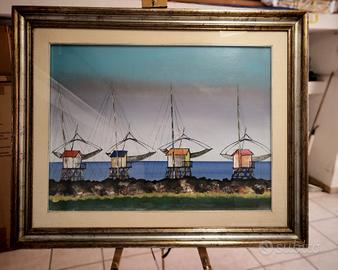 Vendo quadro del pittore Piero c Antinori. Titolo : "baracche da pesca" datato 1967 è Autenticato dall'artista stesso nel 1973. Dimensioni tela 80x60, con cornice in legno bellissima. Dipinto in ottime condizioni. Molto più bello dal vivo ovviamente. Visionabile a Roma, preferenza per scambio a mano visto l'ingombro. Alessandro Gradito WhatsApp per ulteriori informazioni