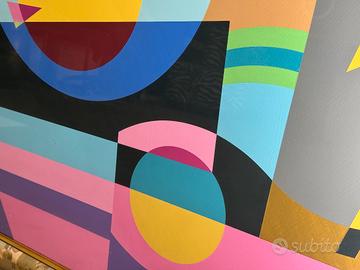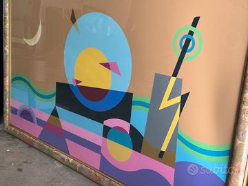 Fantastico quadro realizzato da Piero Cetoli in acrilico su compensato con misure 140x80 cm. L’esemplare in questione è un pezzo unico (come riportato sul retro dall’artista). L’opera si intitola “Memorie” ed è il numero 447 del catalogo dell’artista. L’opera è stata dipinta in Italia negli anni ’80, arte astratta e geometrica, le cui forme audaci riprendono il concetto di Radical Design, in voga in quegli anni. Le foto sono parte integrante della descrizione. Ritiro a mano o spedizione a carico e rischio dell’acquirente. Si vende solo l'opera non la cornice e il vetro.