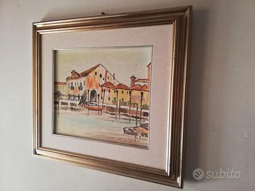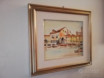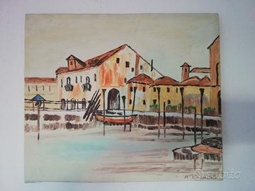 "VEDUTA VENEZIANA CON CASE E BARCHE" ANNO 1992.