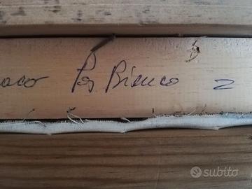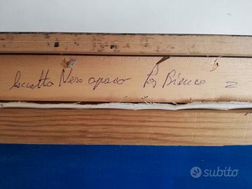 QUADRO PITTORE "REMO BIANCO". BIOGRAFIA: Remo Bianco ( Milano, 1922 - Milano, 1988 ). Pseudonimo di Remo Bianchi, l'artista frequenta l'Accademia di Brera, conosce de Pisis e inizia a frequentare il suo studio, dove incontra Carrà, Sironi, Savinio, Soffici, Soldati, Marini, Cantatore. Nel 1941 viene arruolato come puntatore mitragliere su un cacciatorpediiere, che viene affondato. Salvato dagli inglesi viene iprigionato a Tunisi. Nel 1944 torna a Milano e ricontatta de Pisis. Partecipa al Movimento Nucleare, fondato da Baj e Dangelo, da cui impara l'amore per la materia e dallo Spazialismo apprende la dimensione dadaista, si interessa ai colori materici e alla scrittura materica. La sua arte si libera dalla figuratività per divenire pennellate pure. All'inizio degli anni Cinquanta realizza opere su strati di vetro e plastica e intagliate su legno. Dopo una ricerca effettuata sul college, nascono i Tableux dores, creati con foglie d'oro e pittura. Nel 1956 scrive il manifesto dell'arte Improntale, che nasce dall'impronta stampatra come un timbro colorato. Negli anni Settanta realizza degli esperimenti con la neve artificiale, che spruzzava su diversi oggetti o persone. Gli oggetti venivano chiusi in teche e le persone fotografate in bianco e nero. Nascono le Sculture Neve. Tra le ultime sperimentazioni dell'artista, vi è l'Arte Elementare: lavori realizzati con fiori, frutti, giostre, soldatini e scritte. -" LE SUE OPERE SONO PRESENTI IN COLLEZIONI PUBBLICHE E PRIVATE , MUSEI IN ITALIA E ALL'ESTERO ". -"PROVENIENZA MIA COLLEZIONE". -"LE FOTO CORRISPONDONO ALLA REALTA'". -"SE INTERESSATI POSSO FORNIRE ULTERIORI FOTO PIU' DETTAGLIATE ED EVENTUALI MISURE". -" PER TECNICA, MISURE E PREZZI SOLO IN PRIVATO ".