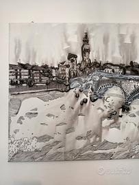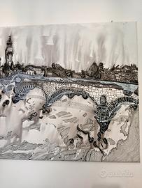 Quadro materico Handmade su tela 60×90, Ponte Pietra Verona 2022, tecnica mista e acrilico su tela.
