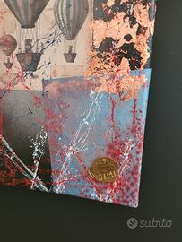 - Collage con carta stampata e foglia effetto oro su tela canvas intelaiatura in legno.