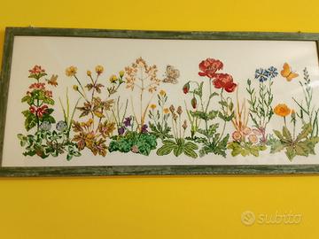 quadro ricamato a mano raffigurante piante in diverse sfumature di colori. lungo cm. alto cm. .. x motivo di spazio lo vendo a sole 40€ compreso di cornice prezzo trattabile