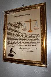 QUADRO RAFFIGURANTE BILANCIA , GILDA E PREGHIERA DEL GIUDICE SCRITTA INTERAMENTE A MANO.L' IMMAGINE NON E' NE STAMPATA, NE TANTO MENO DECOUPAGE, MA DIPINTA CON COLORI ACRILICI E REALIZZATO SU SUPPORTO LIGNEO.