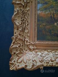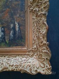 Vendo quadro con cornice in legno dei primi del 900, rappresentante un paesaggio dipinto su tela, necessita di lieve ristrutturazione, dimensioni compresa cornice: altezza 59 centimetri, lunghezza 68 centimetri, profondità 8 centimetri. Dimensioni quadro: altezza 39 centimetri e lunghezza 48 centimetri.