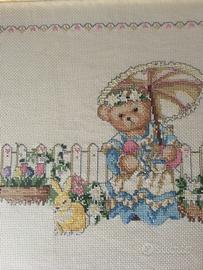 Quadro ricamato a punto croce su tela Aida comprensivo di cornice. Vendo per cambio arredamento camera da letto.