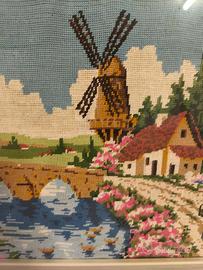 Vendo bellissimo quadro realizzato con tecnica Punto-Croce, raffigurante "Il Villaggio". Dimensioni: 62 cm x 52 cm. La carta posteriore ha uno strappo, si può cambiare tranquillamente. Ritiro a mano, no spedizione.