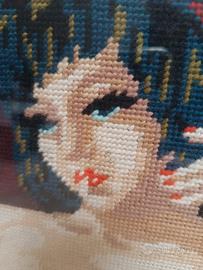 Bellissimo quadro punto croce soggetto "nudo di donna". Realizzato negli anni 80 e completato da una sontuosa cornice color oro delle dimensione totali 95x66 cm. Opera perfetta, ben fatta, cornice integra. Ideale per arredamento soggiorno o camera da letto.