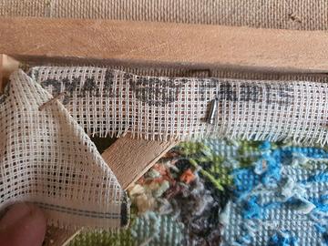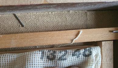 Quadro vintage lavorato a punto e croce Royal Paris , Les Chatons , art. 13248 . Montato in cornice in legno , misura totale cm. 59x48 .