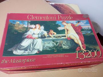 Puzzle magnifico e raro "Amor Sacro e Amor Profano" autore Tiziano - 13.200 pezzi - Collezioni Oro Clementoni - su tavola oppure in caso di spedizione suddiviso in comparti già montati - Misure in centimetri: 299 x 145.
