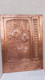 Vendo quadretto in rame a bassorilievo , vi è rappresentato un vaso di fiori. Era presente nell'arredamento di una taverna ora dismessa. Può essere un simpatico complemento d'arredo. le dimensioni sono cm 45 x 33
