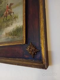 uno dei tre quadri che rappresentano intermezzo caccia cornice legno antico valore co 500 euro misura 100x120 opera Paghliani I
