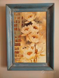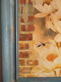 Bellissimo quadro realizzato con tecniche miste quali decoupage, craclè e stencil pittorico. La cornice è stata anticata e patinata a cera per conferirle un aspetto vissuto.
