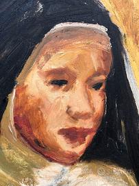 Quadro a olio che ritrae Santa Rita da Cascia. Pittrice fiorentina. Dimensioni: altezza 70 cm, larghezza 50 cm.