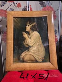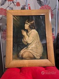 Quadro con cornice “Il piccolo Samuele in preghiera”. Questa riproduzione raffigura il soggetto biblico noto come "Il piccolo Samuele" mentre prega. Basato sull'opera originale del pittore inglese Joshua Reynolds del 1776. Condizioni buone come da foto. Misure in foto.