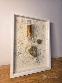 Quadro in legno con effetto bottiglia spaccata affogata nella resina, completamente fatta a mano, la bottiglia è uno champagne Louis XIV del 1996, perfetta come regalo per appassionato di vino!