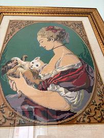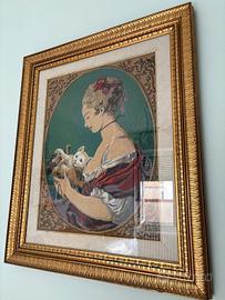 quadro ricamato a mano mezzo. vintage con cornice dorata stile classico!