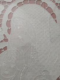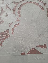 Quadro ricamato a mano punto intaglio, cornice in legno. Madonna con bambino. Misure 60x70 Prezzo trattabile