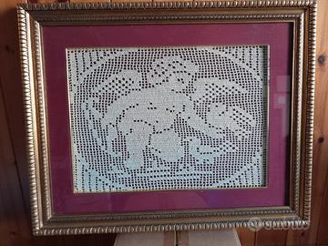 Quadro ricamato filet con angelo