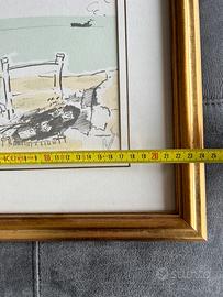 Litografia 17x17 cm., contraddistinta dal nr. 8 di 100, firmata dall’autore, riproducente una sedia con natura morta su panorama marino, con cornice in legno dorata dimensioni 32x32 cm. Renato Borsato (1927-2013) è ritenuto tra i migliori pittori contemporanei del dopoguerra,caratterizzato da una cifra stilistica che restituisce principalmente un figurativo di matrice espressionista. Ha vissuto e lavorato a Venezia ed in diverse città italiane ed europee. Si è da subito distinto tra i migliori artisti italiani del dopoguerra, riscuotendo consenso di critica e pubblico e vincendo numerosi premi. Ha partecipato alla Biennale Internazionale d'Arte di Venezia, alla Quadriennale di Roma, ha ripetutamente fatto parte della Giuria alle Collettive Opera Bevilacqua la Masa, tra il 1968 ed il 1973 ha esposto a Firenze. Dal 1979 al 1986 è stato Presidente della Fondazione Bevilacqua la Masa. Ha allestito le scene di opere nei teatri Cà Foscari e La Fenice. Ricco il suo palmarès