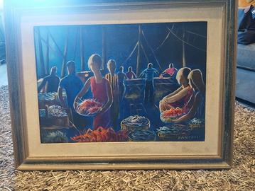 vendo quadro Eliano Fantuzzi " il mercato del pesce 1975 " . prezzo 1.500,00