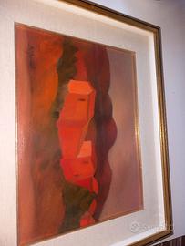 vendo quadro di Raffaele Frumenti anni 60 dal titolo La fattoria rossa con cornice misure 54 per 45