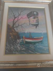 Quadro ROMANO Mussolini . Opera Il Babbo e la barca. Misura 30 x25.