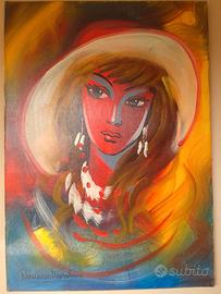 Quadro del pittore Romano Mussolini. Soggetto: Volto di Donna. Dimensioni: 50×70 Tecnica: Mista Quotazione: Bolaffi 83