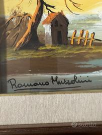 Tela 20x30 su cornice il legno dorata per un totale di cm53x43cm,certificato di autenticità come da foto,Romano Mussolini figlio di Benito comincio’ a dipingire nel dopoguerra quindi questo quadro risale agli anni 50/60/70.Prezzo poco trattabile,pezzo per collezionisti e intenditori.