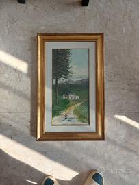 Vendo suggestivo dipinto originale del pittore A.V. Pegorari, realizzato nel 1980, raffigurante un rustico paesaggio montano. L’opera è eseguita a olio su tela, formato 30x60 cm, e incorniciata in legno, pronta per essere esposta.