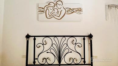 Vendo elegante quadro moderno raffigurante una tenera scena familiare, realizzato con intaglio su legno. Il disegno stilizzato rappresenta madre, padre e bambino in un abbraccio armonioso, simbolo di amore e unità familiare.