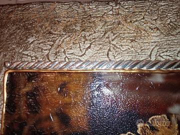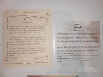 Il certificato attesta l'uso di stucchi, cere, foglia d'oro e d'argento, con decorazioni applicate a mano da maestri d'arte. I dettagli che sembrano gemme sono probabilmente cristalli o pietre dure.