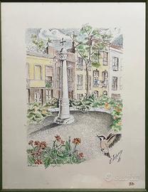 Piazza s.Domenico Cagliari acquarello su china anni 90 artista sardo 45 x 58 cm Ritiro a mano a Cagliari Trattabile
