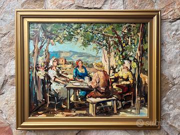 Quadro -Scampagnata- dipinto a olio su faesite, eccellente fattura, realizzato dall’artista: Nicola Canzanella 1934-2014 firmato in basso a sinistra