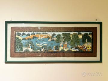 Quadro scena di caccia in stile miniatura indiana