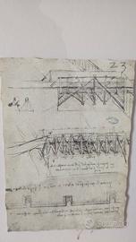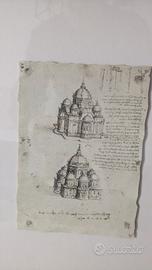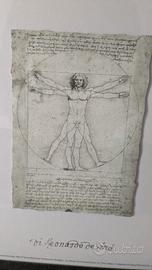 riproduzione tavole schizzi Leonardo da Vinci si teca quadro legno vetro pesante cm 105x40