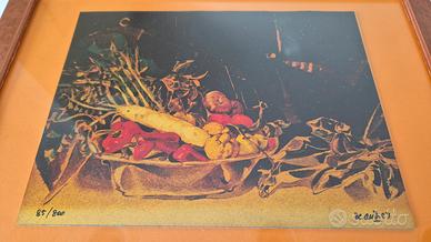 Quadro serigrafia esemplare 85/800 del Pittore Giovanni Battista De Andreis. L'opera è realizzata su una lastra in oro 750 del peso di 2 grammi. Dimensione lastra cm 21 x 16. Dimensione cornice cm 32,4 x 23,8.