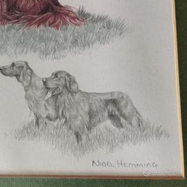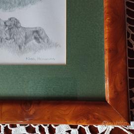Quadro cm. 56x 45 con cornice di pregio scene di caccia con Setter Irlandesi