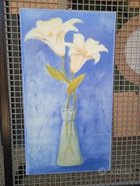 Quadro in legno massiccio con stampa Gigli bianchi misura 67x37cm. Quadro messo in svendita x chiusura attività causa covid19.