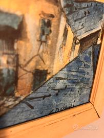 Il quadro mostra il caratteristico paesaggio del borgo sul mare con le case colorate e il porto, in stile pittorico molto suggestivo.