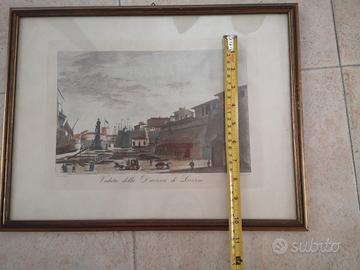 Antica stampa raffigurante la Darsena di Livorno. - Cornice in legno con finiture dorate. - Vetro protettivo. - Stampa su carta. Dimensioni 28 x 9