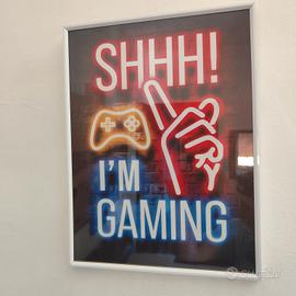 - Motivo: scritta neon "Shhh! I'm gaming" con controller.