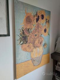 grande quadro stampa su tela con telaio in legno misura cm 100x130 , dipinto vaso di girasoli di VAN GOGH , ottime condizioni , ritiro di persona a santa marinella (rm) .